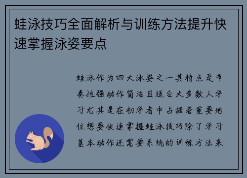 举办游泳技术比赛和挑战赛,促进游泳技术的创新和发展;