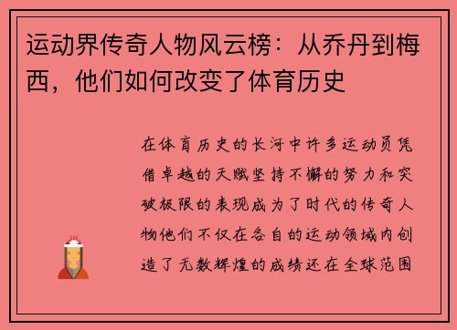 世界游泳纪录保持者,凭借着超乎常人的毅力、天赋与决心,书写了属于自己的非凡传奇。这些游泳英雄,不仅代表着体育竞技的最高水平,更象征着人类挑战极限、突破自我的精神。他们的成功不仅仅是速度与力量的体现,更是对内心与身体极限的全方位挑战。本文将从四个方面来探讨世界游泳纪录保持者的非凡之旅,分别为:超越自我...